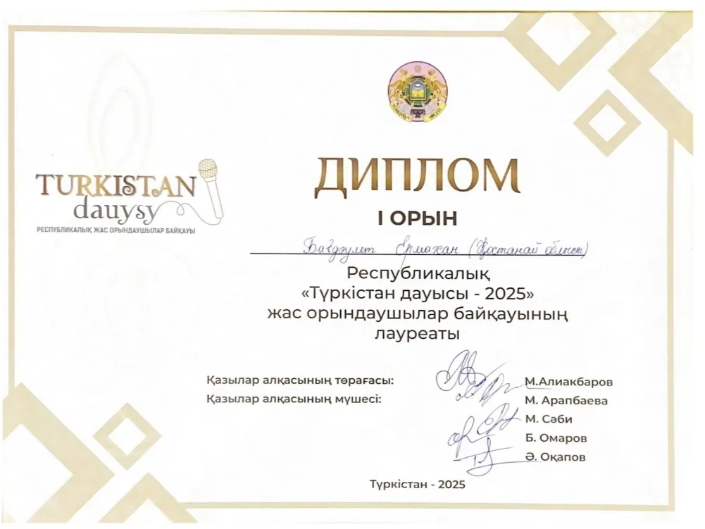 Түркістан қаласы "Түркістан дауысы" - байқауы Ермахан Бағдаулет - 1 орын