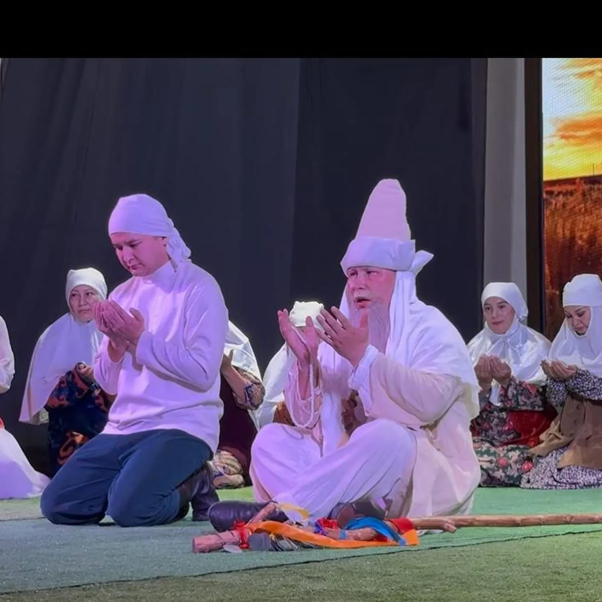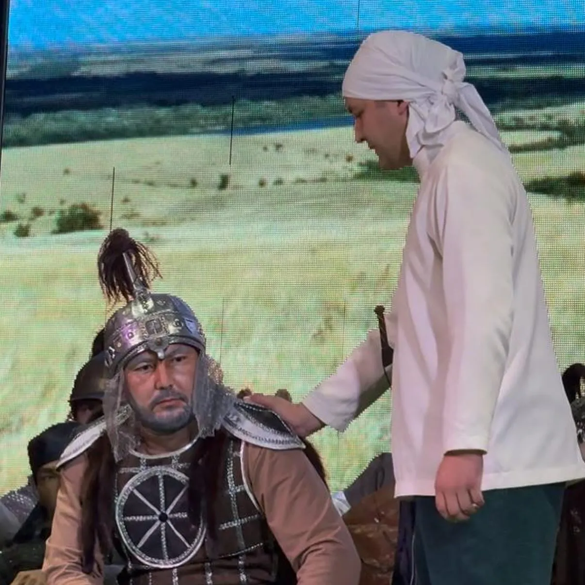 Шараға арнайы қатысқан аудан әкімі Қанат Уәшұлы қойылым аяқталған соң сахна төріне көтеріліп, әртістерге шынайы алғысын білдірді.