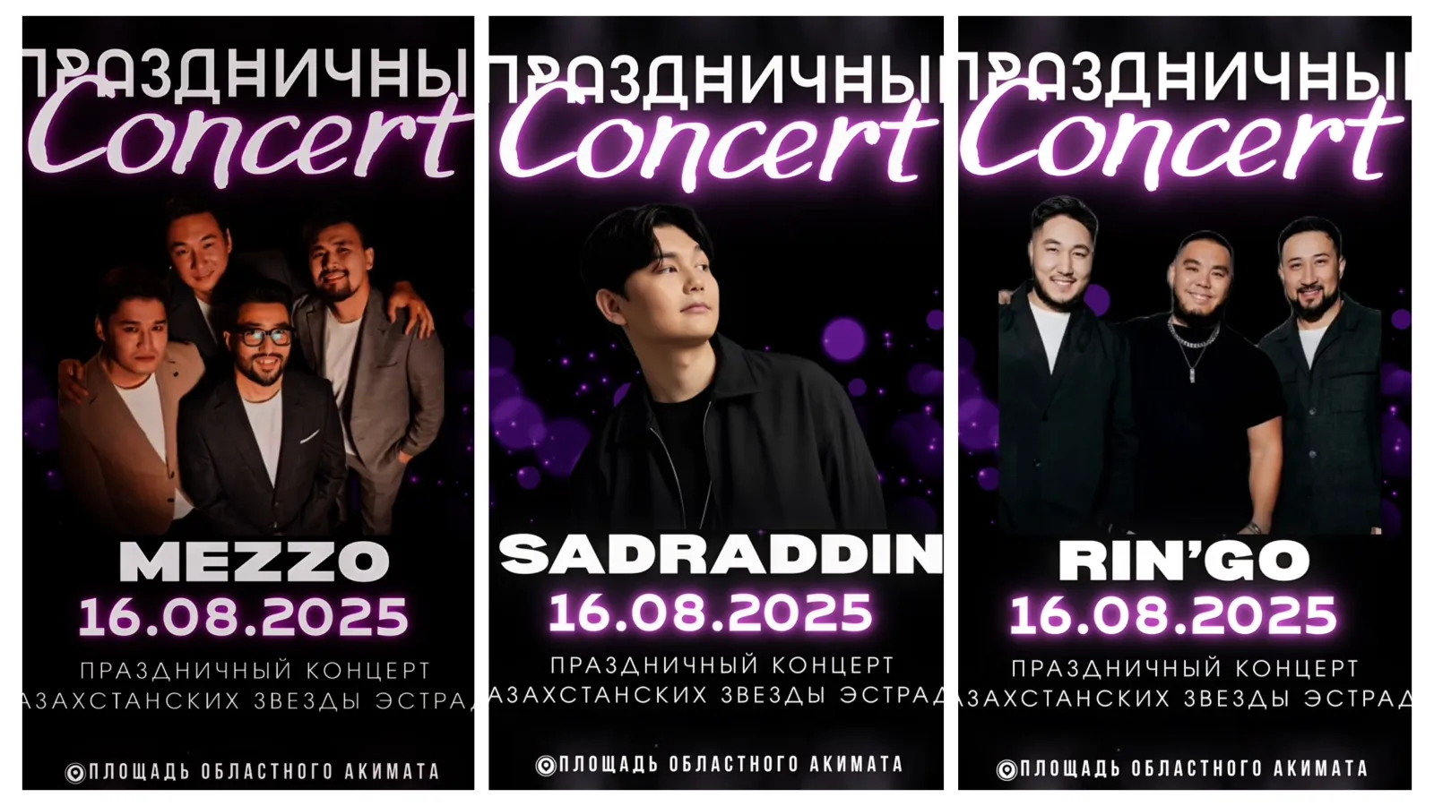 Қала тұрғындары мен қонақтарын 16 тамызда сағат 20.30-23.00 аралығында облыс әкімдігінің алаңында өтетін қазақстан эстрада жұлдыздарының мерекелік концертіне шақырамыз: гр.MEZZO гр.RIN'GO Sadraddin