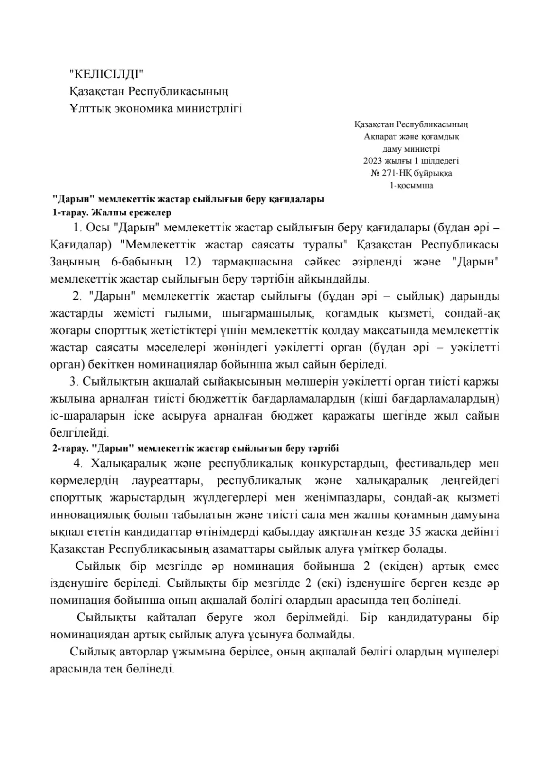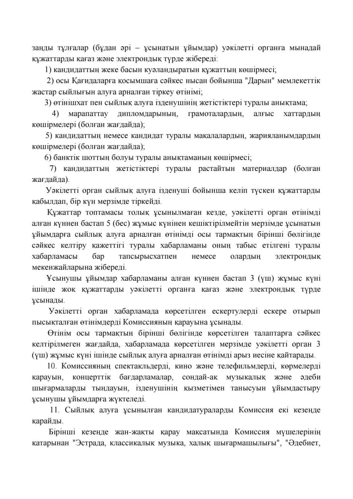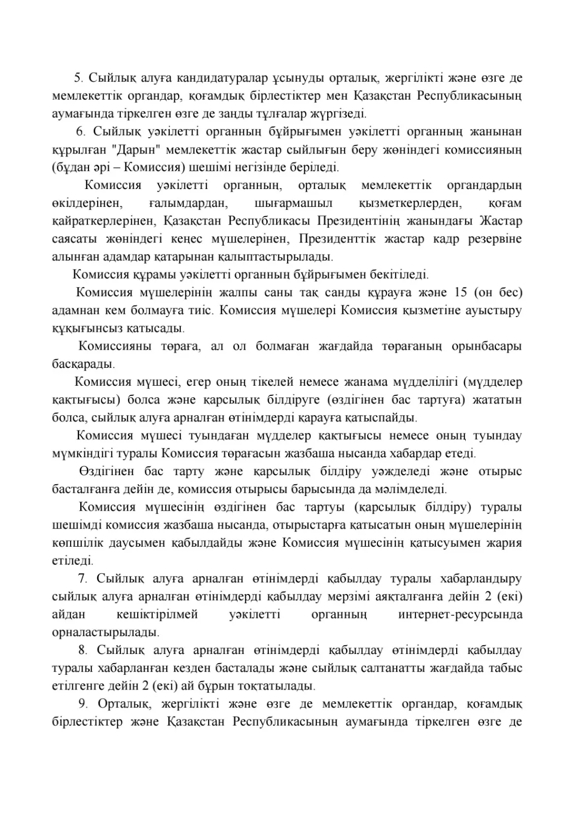 "Дарын" мемлекеттік жастар сыйлығының кейбір мәселелері туралы