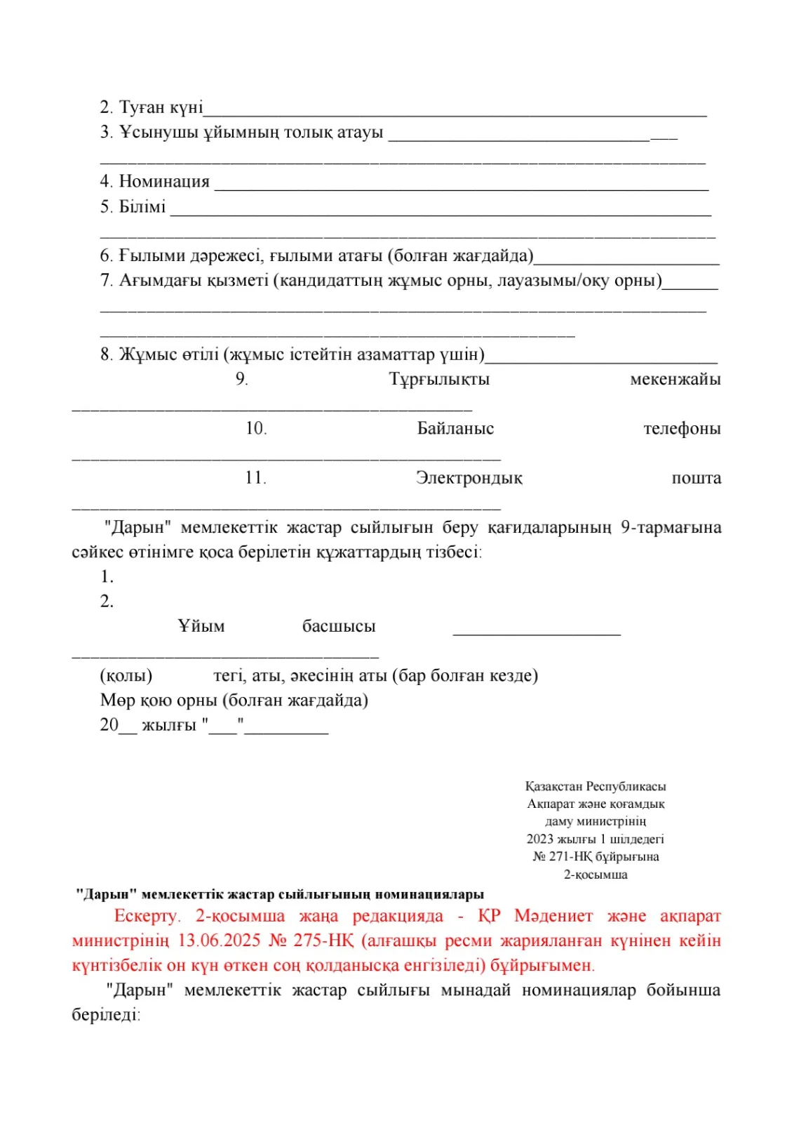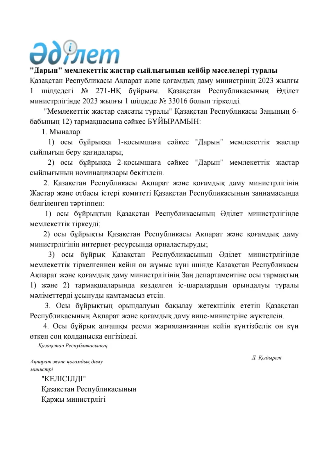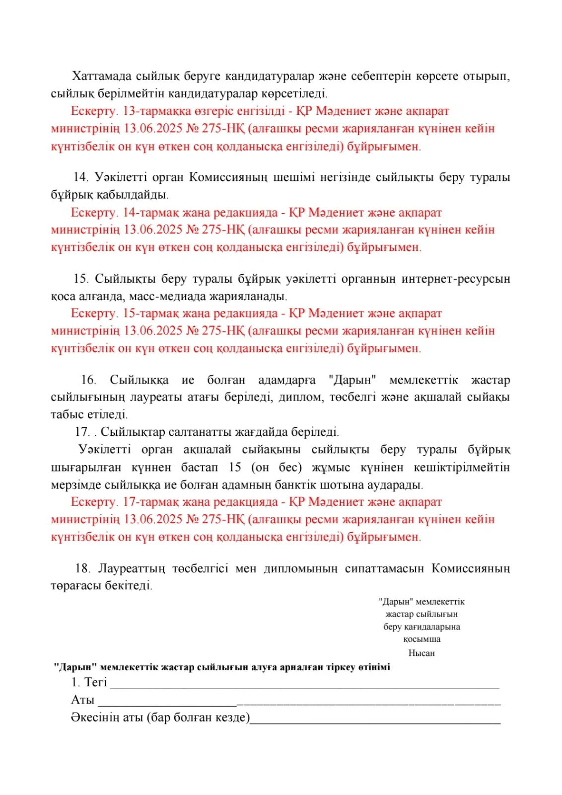 "Дарын" мемлекеттік жастар сыйлығының кейбір мәселелері туралы