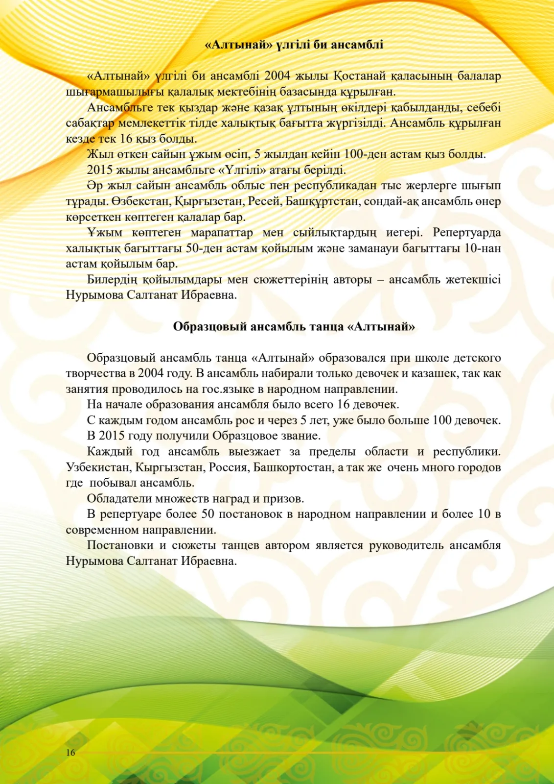Участник VII Международного фестиваля хореографического искусства «Наурыз достарын шақырады»: Образцовый ансамбль танца «Алтынай», г.Костанай Казахстан