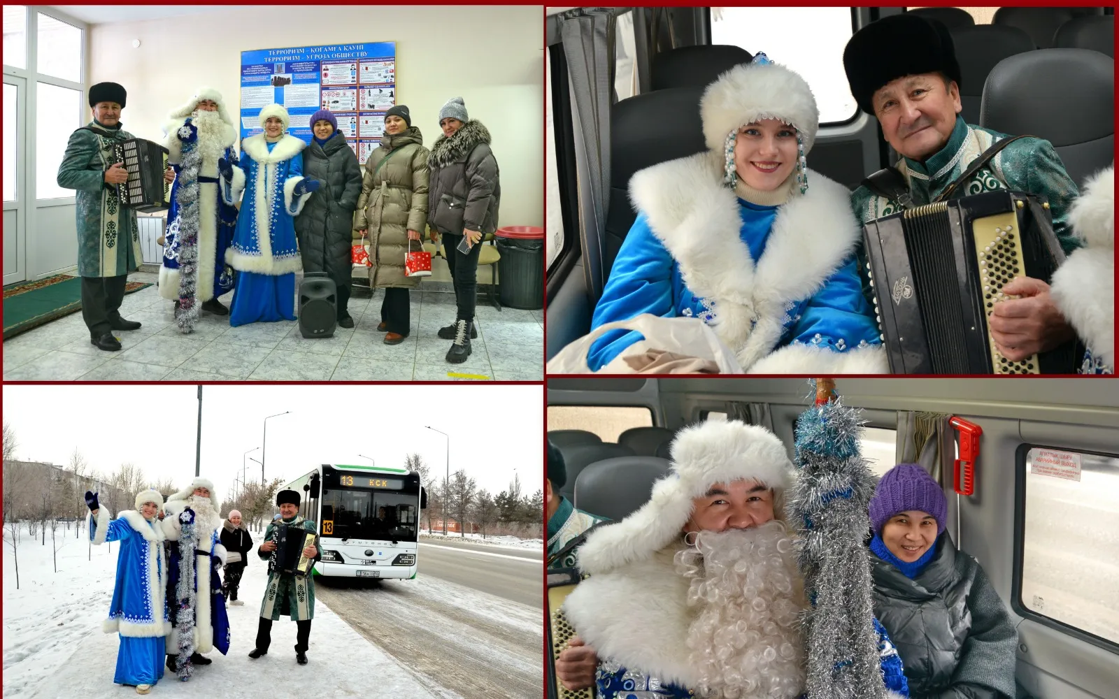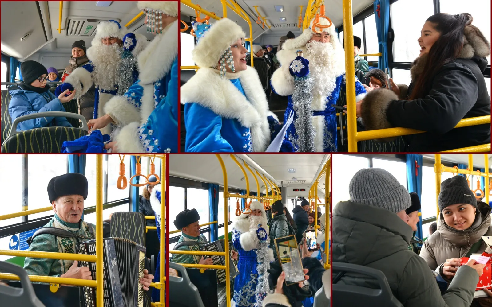 Сегодня 28 декабря Новогодний маршрут (развлекательная программа с Дедом Морозом) был организован артистами ГДК «Мирас» в маршрутах №13 №5 №18, №2, №10, №103. Дед Мороз и Снегурочка в сопровождении песен под баян зарядили всех отличным настроением!