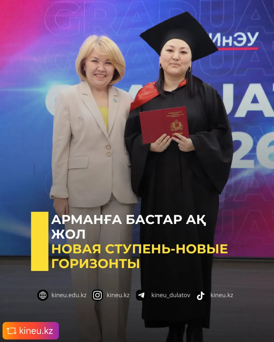 🎁На церемонии вручения дипломов гостей и выпускников особенно радовали музыкальный и танцевальный номера - это подарок членa Ассоциации выпускников КИнЭУ Зухры Имановой. Выступления артистов городского дворца культуры «Мирас» добавили празднику яркости и праздничного настроения.