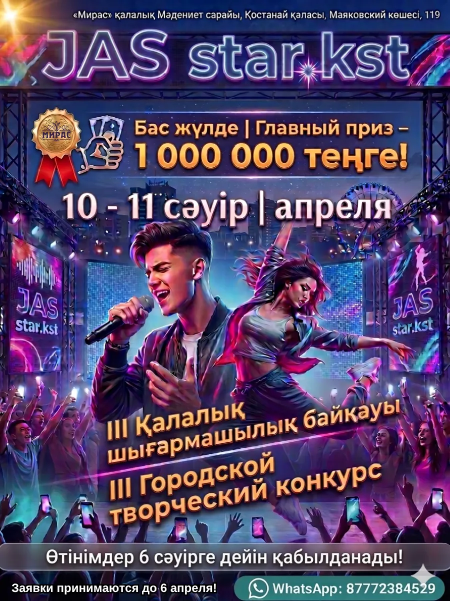 Городской творческий конкурс «Jas star.kst» | Приглашаем талантливых исполнителей в возрасте от 15 до 35 лет принять участие в конкурсе и продемонстрировать своё мастерство на сцене