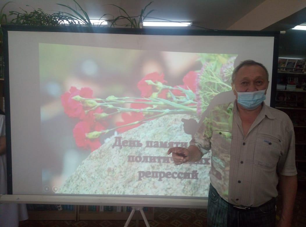 Сегодня методист районного Дома культуры Бекмухамедов Е.Б. выступил с докладом на мероприятии, посвящённом Дню памяти жертв политических репрессий, которое состоялось в районной библиотеке.