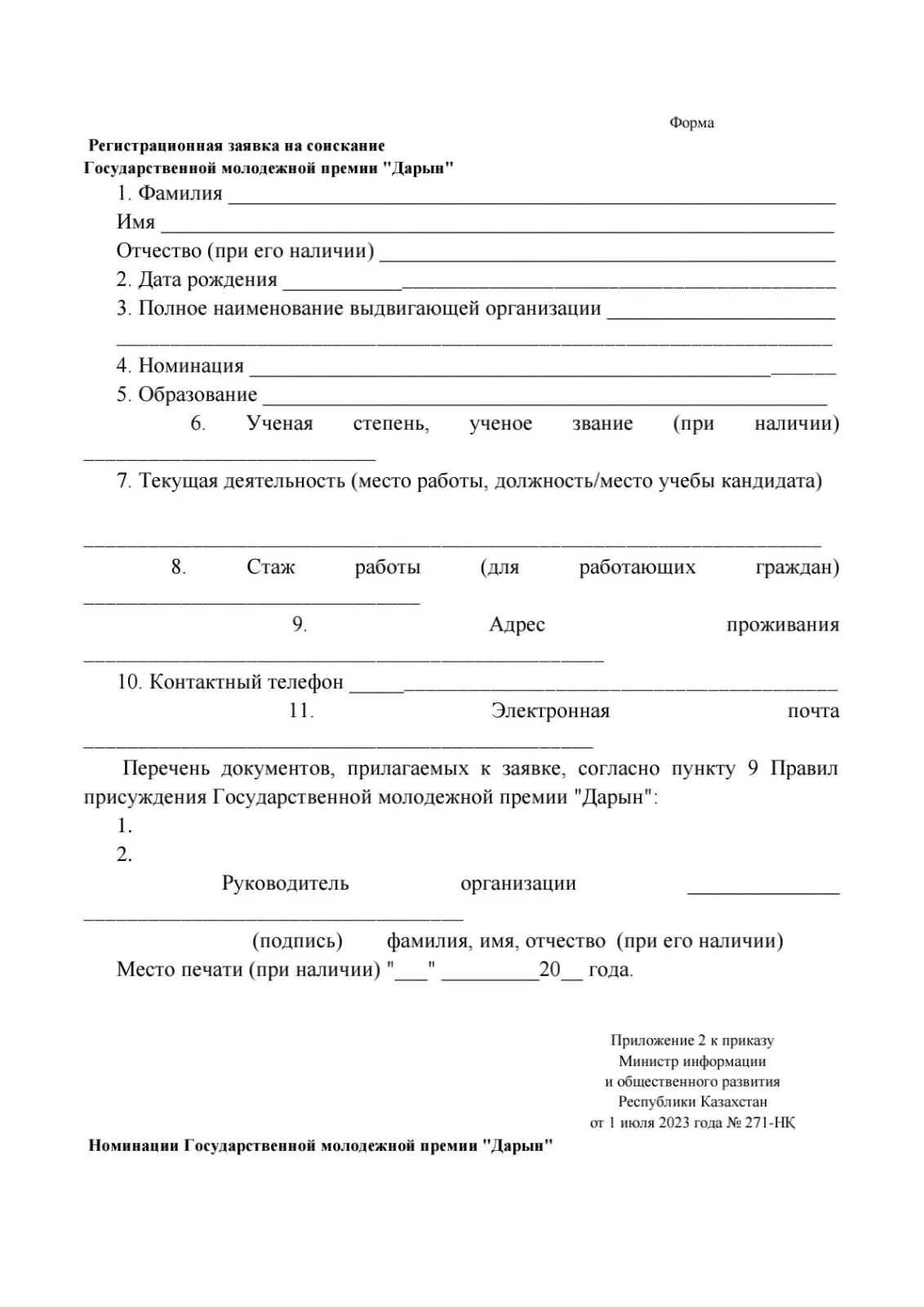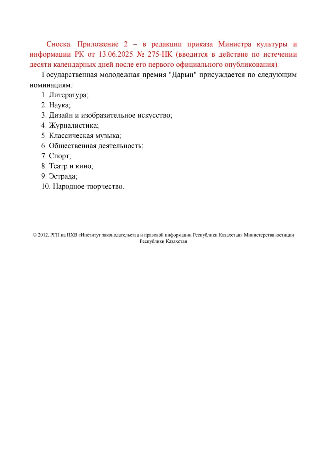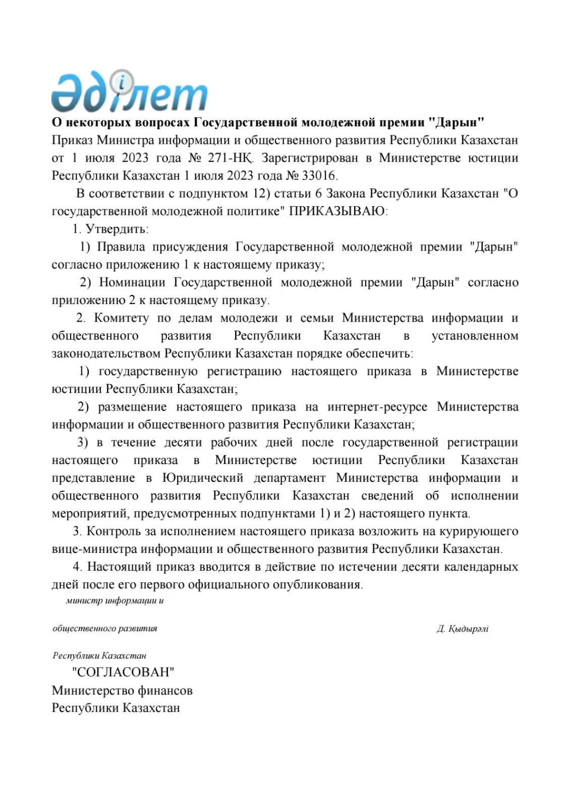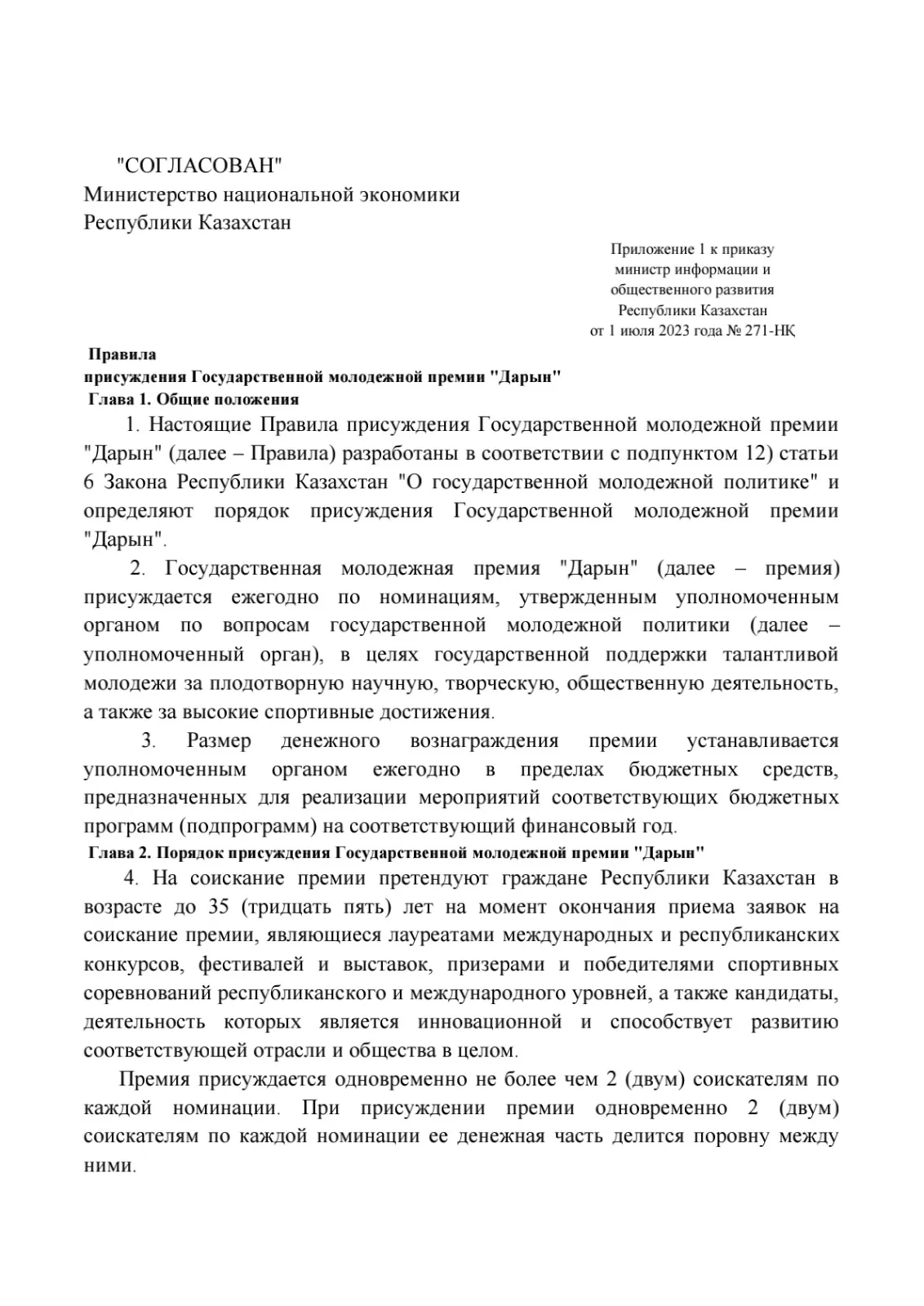 О некоторых вопросах Государственной молодежной премии "Дарын"